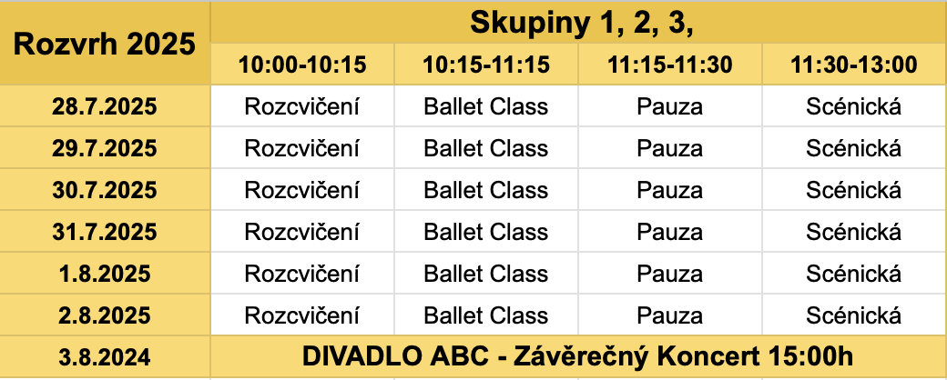 Upozorňujeme rodiče, že při této příležitosti je důležité zakoupit jednotné oblečení pro každého účastníka podle skupiny na závěrečný koncert do divadla ABC.