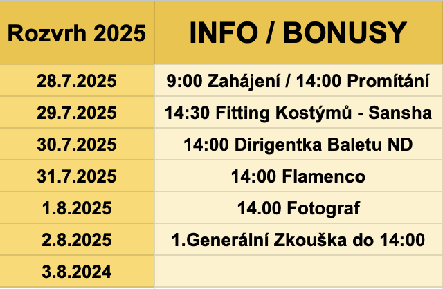 Informace a časový harmonogram se průběžně AKTAULIZUJE a může se měnit !